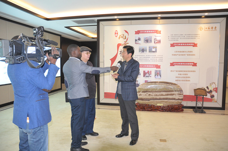 客人在陸董事長(zhǎng)陪同下參觀了華建展示中心,簡(jiǎn)單的午餐后在會(huì)議室進(jìn)行了交流與會(huì)談。陸董事長(zhǎng)首先介紹了華建的基本情況,特別是打造“三個(gè)共同體”以及與員工和合作方分名、分利、分未來(lái)的運(yùn)營(yíng)機(jī)制,最后希望能夠借助我國(guó)“一帶一路”戰(zhàn)略與海山國(guó)際聯(lián)合共同參與安哥拉的城市建設(shè)。安方用PPT介紹了2013-2017年的遠(yuǎn)期發(fā)展規(guī)劃和首都羅安達(dá)近期的發(fā)展設(shè)想,希望江蘇華建這樣有實(shí)力的中國(guó)國(guó)有企業(yè)積極到安哥拉拓展市場(chǎng)。陸董事長(zhǎng)最后還接受了安哥拉國(guó)家電視臺(tái)隨行記者的采訪,并與科魯茲·內(nèi)圖秘書(shū)長(zhǎng)、巴依相·朱紐主席等貴賓親切合影。