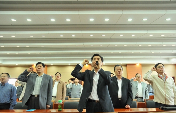 5月27日上午,建工控股公司機(jī)關(guān)、華建總部黨員干部和揚(yáng)建、揚(yáng)安、華宏、中專校等單位領(lǐng)導(dǎo)班子成員及黨務(wù)、紀(jì)檢、財(cái)務(wù)、行政等部門中層負(fù)責(zé)人共80多人,到揚(yáng)州市警示教育基地參觀接受教育,大家觀看了預(yù)防腐敗警示教育宣傳圖片、電視專題片和違法犯罪人員現(xiàn)身說(shuō)法錄像。建控公司黨委書記、董事長(zhǎng)陸金龍?jiān)趨⒂^結(jié)束前作了誡勉講話,指出這次建控系統(tǒng)組織黨員干部開展廉潔自律警示教育活動(dòng),是加強(qiáng)干部能力作風(fēng)建設(shè)的一項(xiàng)重要內(nèi)容。一系列反面案例帶來(lái)的教訓(xùn)和思考,令大家深受觸動(dòng)。見(jiàn)不賢而內(nèi)自省。建控系統(tǒng)廣大黨員干部要從確立正確的角色定位、樹立合理的人生追求、建立完善的制度保障、打造健康的從業(yè)環(huán)境四個(gè)方面入手,進(jìn)一步加強(qiáng)廉政教育、樹立自律意識(shí)、保持清廉本色,從而提高干事業(yè)、謀發(fā)展的能力和水平,為創(chuàng)建“三個(gè)揚(yáng)州”、建設(shè)和諧社會(huì)作出應(yīng)有貢獻(xiàn)。最后,陸金龍同志帶領(lǐng)大家集體進(jìn)行了莊嚴(yán)的廉政承諾宣誓。