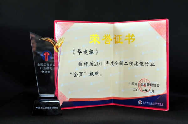 日前,在中施企協(xié)召開的2011年度通聯(lián)工作會議上,經(jīng)過專家評委仔細嚴格的評審,全國工程建設(shè)行業(yè)優(yōu)秀報刊結(jié)果揭曉,公司主辦的《華建報》再次被評為全國工程建設(shè)行業(yè) “金頁”報紙。《華建報》創(chuàng)刊四年來,積極發(fā)揮窗口作用、平臺作用,以傳遞經(jīng)營開拓新信息、報道公司發(fā)展新成就、總結(jié)企業(yè)管理新經(jīng)驗和反映公司文化建設(shè)新成果為主要內(nèi)容,在宣傳企業(yè)形象、凝聚員工精神、塑造企業(yè)文化以及促進行業(yè)交流等方面起到了積極顯著作用,受到社會各界好評。四年來已累計獲得全國建設(shè)行業(yè)報刊“優(yōu)秀獎”兩次,并獲全國工程建設(shè)行業(yè)報刊“金頁獎”兩次。