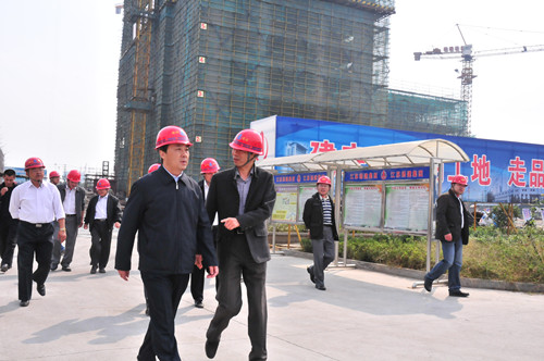 謝正義市長視察揚州建設(shè)大廈項目 時間:2011-10-09 3959 10月6日,揚州市政府謝正義市長在公司董事長陸金龍的陪同下,到我公司建設(shè)代理的揚州建設(shè)大廈暨規(guī)劃展覽館、市民中心項目工地進行視察,并親切慰問節(jié)日期間奮戰(zhàn)在工地一線的施工人員。謝市長對工程總體施工進展表示滿意,要求所有參建單位加強組織管理,科學(xué)規(guī)范施工,確保這一市政府重點項目順利推進。市城鄉(xiāng)建設(shè)局局長楊正福、市規(guī)劃局局長湯衛(wèi)華、公司領(lǐng)導(dǎo)程杰等陪同視察。