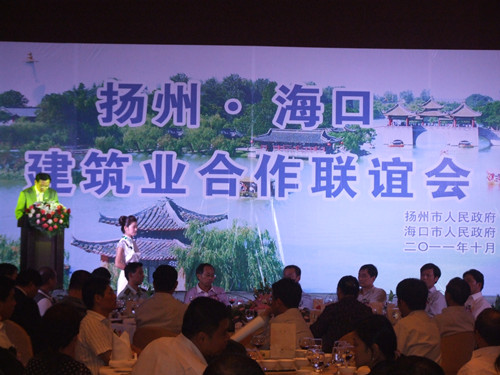 10月20日,揚(yáng)州·??诮ㄖI(yè)合作聯(lián)誼會(huì)暨1-3季度揚(yáng)州建筑業(yè)形勢(shì)分析會(huì)議在海口市文華大酒店隆重召開(kāi),揚(yáng)州市委常委、副市長(zhǎng)陳揚(yáng)、市人大副主任高瑞芹、市政協(xié)副主席朱正海等領(lǐng)導(dǎo)參加了會(huì)議。陳揚(yáng)副市長(zhǎng)指出此次會(huì)議主要是認(rèn)真貫徹落實(shí)揚(yáng)州市第六次黨代會(huì)精神,回顧總結(jié)今年以來(lái)全市建筑業(yè)運(yùn)行發(fā)展情況,研究部署下一階段重點(diǎn)工作,特別是分析研判國(guó)務(wù)院加快建設(shè)海南國(guó)際旅游島的政策機(jī)遇,進(jìn)一步拓展深耕海南建筑市場(chǎng),推動(dòng)建筑業(yè)總量擴(kuò)大、績(jī)效提升,確保全面完成全年目標(biāo)任務(wù)。高瑞芹副主任宣讀了“關(guān)于表彰2010年度揚(yáng)州市建筑業(yè)綜合實(shí)力20強(qiáng)企業(yè)的決定”,江蘇省華建建設(shè)股份有限公司榮獲“房屋建筑類10強(qiáng)企業(yè)”,??谑薪ㄔO(shè)局卓桂勇副局長(zhǎng)介紹了??谑薪ㄖ袌?chǎng)情況,王宏副總經(jīng)理代表市建工控股公司、華建公司作了交流發(fā)言。