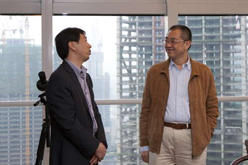 4月11日下午,陸金龍董事長專程赴廣州恒大中心拜訪恒大集團(tuán)董事局副主席、總裁夏海鈞博士,公司副總經(jīng)理兼總工程師程杰、副總經(jīng)理王宏、繆國樞和總會計師李長棟隨同拜訪。恒大集團(tuán)夏海鈞總裁和林漫俊、余偉橋副總裁等領(lǐng)導(dǎo)會見了陸董事長一行,雙方在熱情友好的氣氛中進(jìn)行了會談。陸董事長首先感謝夏海鈞總裁去年在百忙之中參加華建成立三十周年慶祝大會,介紹了華建的發(fā)展近況和承建的恒大工程項目的有關(guān)情況,希望雙方進(jìn)一步確立深入穩(wěn)固的戰(zhàn)略合作伙伴關(guān)系,增加合作領(lǐng)域,拓展合作業(yè)務(wù)工程量,并邀請恒大集團(tuán)赴揚(yáng)州共同合作建設(shè)商業(yè)綜合體項目。