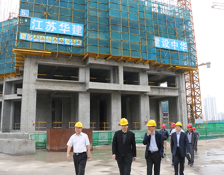 在公司承建的恒大外灘中心施工現(xiàn)場,朱市長與項目管理人員一一握手,向大家表示親切問候。在陪同人員引導(dǎo)下,他饒有興致地邊走邊看,聽取項目負責(zé)人對工程特點、工程進展、工程用材等方面的情況匯報,不時點頭稱贊施工人員的工藝水平和施工技藝,并與項目部主要管理班子親切合影。