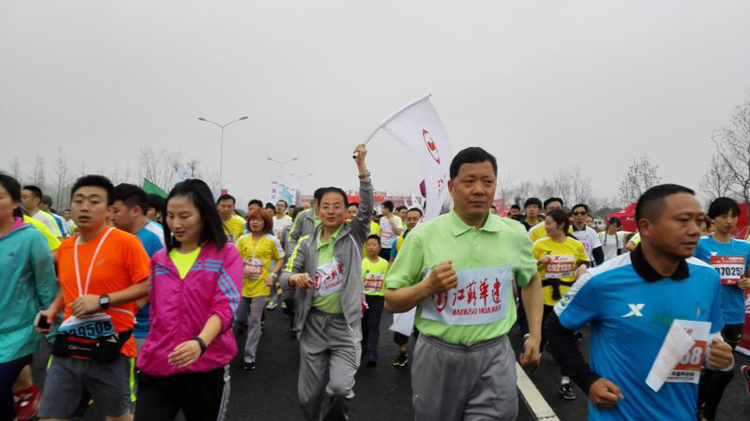 4月19日上午8點(diǎn),由中國體育協(xié)會、江蘇省體育局、揚(yáng)州市政府共同主辦的“中國聲谷杯”2015揚(yáng)州鑒真國際半程馬拉松賽暨全國半程馬拉松錦標(biāo)賽正式鳴槍開賽。江蘇華建愛跑團(tuán)與來自全球43個國家和地區(qū)的3.5萬選手共同沖出起跑線。