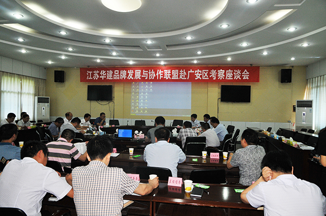 現(xiàn)場(chǎng)考察結(jié)束后,廣安區(qū)委書記文建平親自主持,在區(qū)政府七樓會(huì)議室舉行了“江蘇華建品牌發(fā)展與協(xié)作聯(lián)盟赴廣安區(qū)考察座談會(huì)”。調(diào)研組觀看了廣安區(qū)宣傳片及官盛新區(qū)概念規(guī)劃設(shè)計(jì)宣傳片,并聽取了吳榮勝區(qū)長(zhǎng)對(duì)廣安的推介講話。華建聯(lián)盟常務(wù)負(fù)責(zé)人吳士茂在座談會(huì)的致辭中說,廣安是著名的英雄之鄉(xiāng),是改革開放總設(shè)計(jì)師鄧小平的故鄉(xiāng),江蘇華建近年來懷著對(duì)小平同志的崇敬之情,感佩于廣安領(lǐng)導(dǎo)和人民的熱情,積極參與廣安的經(jīng)濟(jì)建設(shè),貢獻(xiàn)自己的一份力量。這次特地邀請(qǐng)了華建聯(lián)盟部分成員單位的企業(yè)家到廣安學(xué)習(xí)調(diào)研,進(jìn)一步尋找項(xiàng)目合作的機(jī)會(huì),這是雙方加強(qiáng)深度合作、促進(jìn)全面發(fā)展的共同愿望。華建在廣安的項(xiàng)目開展非常順利,政企合作非常愉快,這也給了我們很大的信心和決心,希望能夠在廣安這片熱土上,發(fā)揮華建聯(lián)盟企業(yè)的特長(zhǎng)和優(yōu)勢(shì),尋求更多的合作空間,為廣安的經(jīng)濟(jì)建設(shè)和社會(huì)發(fā)展貢獻(xiàn)更大的力量,為小平同志的家鄉(xiāng)添磚加瓦,造福廣安黎民百姓。他期望通過當(dāng)天短暫的學(xué)習(xí)交流機(jī)會(huì)和今后進(jìn)一步的聯(lián)絡(luò)溝通,盡快找到雙方共同的合作需求,托起共同的事業(yè)。他還簡(jiǎn)單介紹了華建聯(lián)盟的基本情況、經(jīng)營(yíng)理念和運(yùn)作機(jī)制。江蘇華建常務(wù)副總、華建地產(chǎn)和聯(lián)盟投資董事長(zhǎng)程杰,中機(jī)環(huán)建集團(tuán)董事長(zhǎng)巫金林作為客商代表作了交流發(fā)言,表示通過調(diào)研考察,對(duì)廣安區(qū)特別是官盛新區(qū)的未來發(fā)展感到很振奮,進(jìn)一步堅(jiān)定了搞好現(xiàn)有項(xiàng)目的決心和加大投資的信心。文建平書記在最后的講話中高度評(píng)價(jià)江蘇華建在廣安項(xiàng)目上的建設(shè)投入力度,認(rèn)為華建領(lǐng)導(dǎo)重視,工程進(jìn)度快、質(zhì)量好,提升了廣安的城市形象。他希望在已經(jīng)形成的良好合作基礎(chǔ)上,與華建、華建聯(lián)盟進(jìn)一步加強(qiáng)對(duì)接,架起深度合作的橋梁,在房地產(chǎn)開發(fā)、都市產(chǎn)業(yè)、工業(yè)地產(chǎn)、總部經(jīng)濟(jì)等方面尋求更多合作機(jī)會(huì),實(shí)現(xiàn)雙贏。