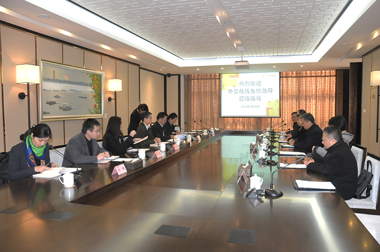 2月25日上午,國家外交部外事管理司廖力強(qiáng)司長(zhǎng)、中央外辦外管局宋軍處長(zhǎng)等一行5人,在省外辦副主任張松平、揚(yáng)州市副市長(zhǎng)汪志堅(jiān)、市外辦副主任徐靜等陪同下,到江蘇華建開展外事工作服務(wù)企業(yè)發(fā)展專題調(diào)研,公司領(lǐng)導(dǎo)陸金龍、陳榮春、程杰、陸俊等一同接待。