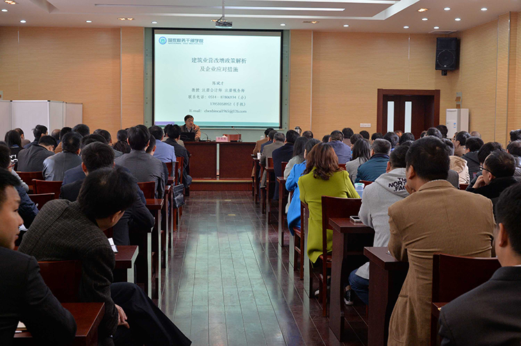 此次培訓(xùn)特邀市國家稅務(wù)學(xué)院陳斌才教授主講。陳教授就建筑業(yè)營改增政策及企業(yè)應(yīng)對(duì)措施作了專業(yè)分析和講解,并與參培人員進(jìn)行了互動(dòng)交流,使參培人員對(duì)建筑業(yè)營改增有關(guān)政策有了更深刻的理解和認(rèn)識(shí),達(dá)到了預(yù)期效果。