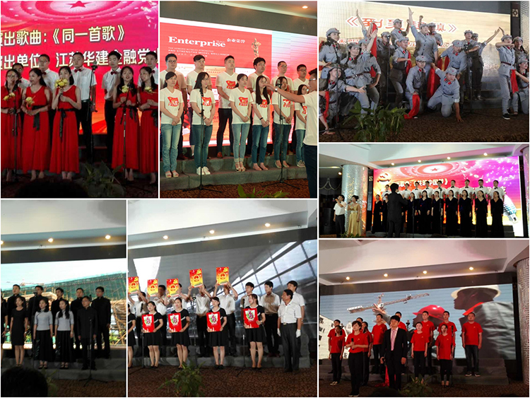 大會(huì)首先用歌詠比賽的方式拉開了帷幕,華建、揚(yáng)建、揚(yáng)安及所屬基層單位黨組織共選送了9個(gè)節(jié)目,《我們走在大路上》、《共筑中國夢》、《國家》、《跟著共產(chǎn)黨走》、《到吳起鎮(zhèn)》等一個(gè)個(gè)精彩的表演節(jié)目獲得了熱烈的掌聲,展示了建工控股系統(tǒng)廣大黨員干部激情澎湃的精氣神。
