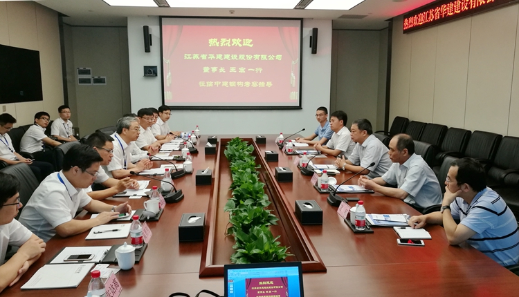 在交流會(huì)上,中建鋼構(gòu)王宏董事長(zhǎng)就當(dāng)下建筑市場(chǎng)變化、產(chǎn)品變化、質(zhì)量變化、生產(chǎn)方式等進(jìn)行了分析,介紹了中建鋼構(gòu)以“鋼”為核心構(gòu)建投資、研發(fā)、設(shè)計(jì)、建造、運(yùn)營(yíng)于一體的商業(yè)模式,并期待與江蘇華建強(qiáng)強(qiáng)聯(lián)合,在區(qū)域、產(chǎn)品、專業(yè)上開展共贏合作。公司王宏董事長(zhǎng)也對(duì)江蘇華建的發(fā)展歷史、區(qū)域市場(chǎng)、PPP項(xiàng)目運(yùn)作、企業(yè)未來發(fā)展等情況進(jìn)行了介紹。他說,通過參觀中建鋼構(gòu)博物館,進(jìn)一步加深了對(duì)鋼結(jié)構(gòu)發(fā)展空間、速度和前景的了解,對(duì)中建鋼構(gòu)的非凡發(fā)展業(yè)績(jī)表示欽佩贊賞;江蘇華建與中建鋼構(gòu)都是國(guó)有企業(yè),都按照現(xiàn)代市場(chǎng)經(jīng)濟(jì)進(jìn)行運(yùn)作,也肩負(fù)著社會(huì)責(zé)任,雙方相識(shí)、相知、相交,可以多形式、多平臺(tái)地開展深入合作,共同發(fā)展,互利共贏。