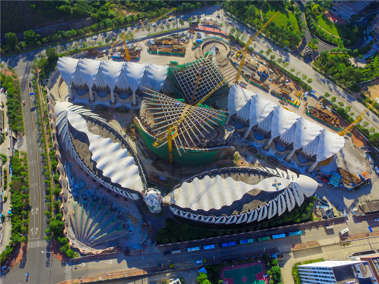 瑪絲菲爾總部中心位于深圳龍華大浪時(shí)尚小鎮(zhèn),占地面積49800m2,建筑面積11萬㎡,總投資10億元。工程建筑外形采用當(dāng)前最為時(shí)尚、最具風(fēng)格的現(xiàn)代仿生學(xué)設(shè)計(jì)理念,所有建筑元素設(shè)計(jì)靈感都源于自然。建筑群俯視猶如展翅雄鷹,構(gòu)件造型都按拋物線、螺旋線等幾何規(guī)律設(shè)計(jì)。該建筑為國內(nèi)目前面積最大的仿生藝術(shù)建筑、深圳龍華時(shí)尚小鎮(zhèn)的代表性建筑,在國內(nèi)建筑界引起了包括中國工程院院士在內(nèi)的建筑專家的關(guān)注,未來有望成為國內(nèi)時(shí)裝秀的主會(huì)場。工程于2009年7月開工,目前一期工程裝修完成50%,二期工程主體結(jié)構(gòu)基本完成,進(jìn)入裝修階段。一期工程1、2號(hào)廠房設(shè)有27對(duì)計(jì)54個(gè)葉片,每對(duì)葉片造型都不一致。中間設(shè)蓮花狀交通塔,屋頂設(shè)有波浪狀屋蓋。二期工程3、4號(hào)廠房分別設(shè)有6個(gè)雙曲葉面板、5片網(wǎng)格梁和22個(gè)Y型鋼柱。