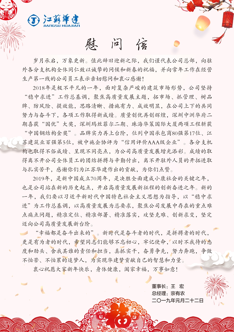 王宏董事長宗有農(nóng)總經(jīng)理給公司駐外員工的慰問信