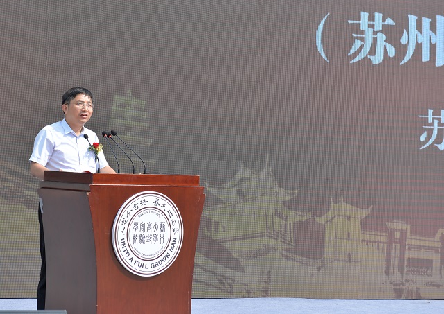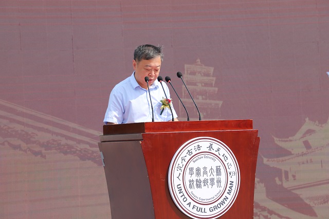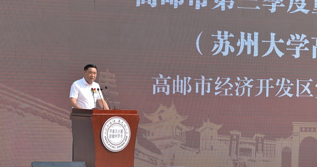 江涌在致辭中表示,蘇州大學(xué)將集中一切優(yōu)勢資源,將蘇大高郵實(shí)驗(yàn)學(xué)校項(xiàng)目辦成區(qū)域內(nèi)高質(zhì)量人才培養(yǎng)的示范區(qū)、基礎(chǔ)教育改革發(fā)展的創(chuàng)新區(qū)、優(yōu)質(zhì)基礎(chǔ)教育資源的輻射區(qū),加快高郵教育現(xiàn)代化建設(shè)步伐。