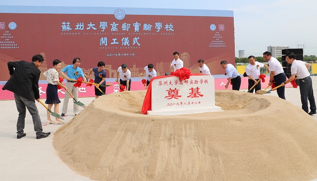 蘇州大學(xué)、高郵市、揚(yáng)州市委宣傳部及公司相關(guān)領(lǐng)導(dǎo)為蘇州大學(xué)高郵實(shí)驗(yàn)學(xué)校項(xiàng)目培土、奠基。