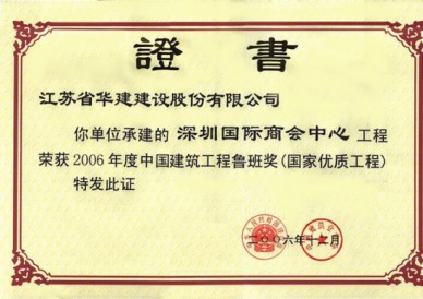 深圳國(guó)際商會(huì)中心位于深圳市福田中心區(qū)6-3地塊,是深圳市CBD標(biāo)志性建筑,與會(huì)展中心隔街相望,是深圳會(huì)展經(jīng)濟(jì)圈的地標(biāo),也是深圳第一座擁有智能門禁系統(tǒng)、第一座擁有酒店式行車大廳、中心區(qū)第一座擁有商務(wù)直升機(jī)停機(jī)坪的寫字樓。 本工程是集辦公與商業(yè)為一體的超高層民用建筑,地下3層地上55層,總建筑面積為134081.38平方米,建筑高度216米,結(jié)構(gòu)形式上,主樓為內(nèi)筒外框勁性混凝土結(jié)構(gòu),外墻裝飾主要采用玻璃幕墻,干掛花崗巖和復(fù)合鋁板。本工程于2002年9月3日開工,2004年12月16日竣工。2003年下半年被評(píng)為深圳市優(yōu)質(zhì)結(jié)構(gòu)工程,2004年下半年先后通過了深圳市建筑業(yè)新技術(shù)應(yīng)用示范工程驗(yàn)收和江蘇省第八批新技術(shù)應(yīng)用示范工程驗(yàn)收,新技術(shù)應(yīng)用“總體上達(dá)到國(guó)內(nèi)領(lǐng)先水平”。此工程應(yīng)用了建筑業(yè)10項(xiàng)新技術(shù)中的9項(xiàng),其他新技術(shù)8項(xiàng),重點(diǎn)創(chuàng)新新技術(shù)2項(xiàng)。在施工過程中,多次受到有關(guān)各方組織的觀摩會(huì)、參觀會(huì),2005年獲深圳市優(yōu)質(zhì)工程“金牛獎(jiǎng)”、廣東省“金匠獎(jiǎng)”、江蘇省“揚(yáng)子杯”,并榮獲“中國(guó)十大金牌寫字樓”榮譽(yù)稱號(hào)。2006年獲全國(guó)建筑最高獎(jiǎng)——魯班獎(jiǎng)。