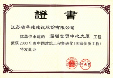 招商銀行大廈工程1998年6月18日開(kāi)工,2001年9月29日竣工,觀感得分91.9分,評(píng)定為“優(yōu)良工程”;先后榮獲深圳市優(yōu)質(zhì)樣板工程“金牛獎(jiǎng)”、江蘇省優(yōu)“揚(yáng)子杯”、廣東省優(yōu)良樣板工程,2003年榮獲“中國(guó)建筑工程魯班獎(jiǎng)”。