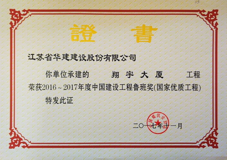 翔宇大廈工程位于淮安市生態(tài)新城核心示范區(qū),北鄰景會(huì)路、西鄰致遠(yuǎn)路、南面為篆香樓路,交通便利地,由淮安新城房地產(chǎn)開發(fā)有限公司投資,東南大學(xué)建筑設(shè)計(jì)研究院設(shè)計(jì),江蘇省華建建設(shè)股份有限公司總承包施工,總建筑面積90300平方米,其中地上72036平方米,地下18264平方米。工程由南北主樓、中裙樓和北裙樓組成,南主樓20層,北主樓22層,建筑高度88.6米,主體結(jié)構(gòu)為鋼筋混凝土框架剪力墻結(jié)構(gòu),基礎(chǔ)為樁+筏板基礎(chǔ)。該工程于2011年7月18日破土動(dòng)工,于2014年9月9日竣工。該工程被評(píng)為住建部綠色施工科技示范工程、國(guó)家AAA級(jí)安全文明標(biāo)準(zhǔn)化工地和江蘇省建筑業(yè)新技術(shù)應(yīng)用示范工程。2016年被中建協(xié)評(píng)為2016—2017年度中國(guó)建設(shè)工程魯班獎(jiǎng)(國(guó)家優(yōu)質(zhì)工程)。