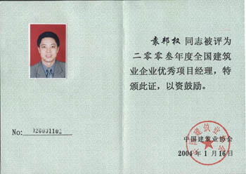 他本人先后被評(píng)為深圳市優(yōu)秀項(xiàng)目經(jīng)理、揚(yáng)州市優(yōu)秀項(xiàng)目經(jīng)理、江蘇省優(yōu)秀項(xiàng)目經(jīng)理、江蘇省建筑業(yè)質(zhì)量管理先進(jìn)個(gè)人、揚(yáng)州市勞動(dòng)模范、江都市有突出貢獻(xiàn)的中青年專家、建設(shè)部?jī)?yōu)秀項(xiàng)目經(jīng)理,在國(guó)家級(jí)刊物發(fā)表論文40多篇、省和國(guó)家級(jí)工法8項(xiàng),并有5項(xiàng)專利,為企業(yè)的發(fā)展作出了較大貢獻(xiàn)。