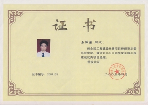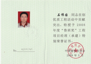 該同志先后擔(dān)任過多項(xiàng)工程的項(xiàng)目經(jīng)理,施工中所體現(xiàn)出的管理水平、協(xié)調(diào)能力、進(jìn)度控制贏得了主管部門和甲方的高度評價。尤其值得一提的是,石偉國擔(dān)任深圳市最大商住樓工程——深圳紅樹西岸(建筑面積35萬平方米)項(xiàng)目經(jīng)理期間,精心組織,精心施工,精心管理,創(chuàng)出優(yōu)良的工程質(zhì)量,工地成為業(yè)內(nèi)外進(jìn)行觀摩學(xué)習(xí)的重要基地,前來參觀者絡(luò)繹不絕,人數(shù)逾3000人次,都深深嘆服于有口皆碑的工程質(zhì)量。該工程在2004年度深圳市上半年度工程質(zhì)量、安全生產(chǎn)文明施工檢查中獲第一名,被評為廣東省、深圳市“雙優(yōu)”、深圳市金牛獎、江蘇省“揚(yáng)子杯”、廣東省“金匠獎”,2008年度問鼎全國建設(shè)工程最高質(zhì)量榮譽(yù)魯班獎。