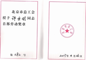 許世明所帶領(lǐng)的團(tuán)隊(duì)先后獲得“北京市優(yōu)秀青年突擊隊(duì)標(biāo)桿”、“全國職工職業(yè)道德建設(shè)百佳集體”、“北京市工人先鋒號”、“北京市模范集體”等榮譽(yù)稱號;其本人先后獲得“揚(yáng)州市建工系統(tǒng)優(yōu)秀共產(chǎn)黨員”、“江蘇省優(yōu)秀項(xiàng)目經(jīng)理”、“北京市優(yōu)秀青年工程指揮”、“第二屆北京市創(chuàng)業(yè)青年首都貢獻(xiàn)獎”、“首都勞動獎?wù)隆?、“江蘇省建筑業(yè)企業(yè)優(yōu)秀建造師”等榮譽(yù)稱號,許世明同志還被選拔為 “江蘇省333高層次人才培養(yǎng)工程”中青年科學(xué)技術(shù)帶頭人。