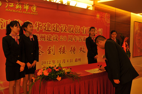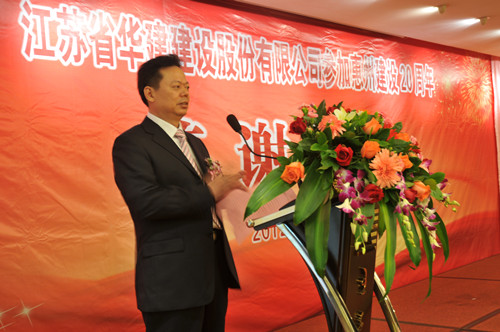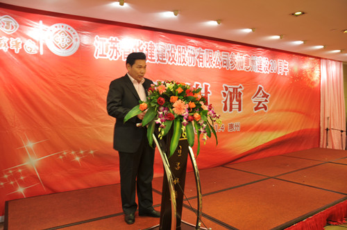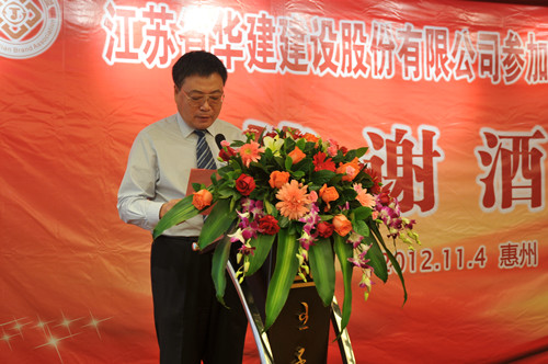 11月4日,公司在惠州隆重舉辦參加惠州建設(shè)20周年答謝酒會,副董事長、總經(jīng)理宗有農(nóng)主持并作開場致辭?;葜菔杏嘘P(guān)政府部門、部分合作方企業(yè)的負(fù)責(zé)人,華建聯(lián)盟成員單位負(fù)責(zé)人,公司董事、監(jiān)事和高管等130余人出席酒會?;葜莨究偨?jīng)理華恒榮介紹了公司參加惠州建設(shè)二十年的有關(guān)情況。惠州市工商聯(lián)主席、恒宇實業(yè)發(fā)展公司董事長楊滿芳代表合作方發(fā)言,惠州市住房和城鄉(xiāng)規(guī)劃建設(shè)局副局長陳訓(xùn)政代表政府主管部門致辭,分別對江蘇華建進(jìn)惠施工二十周年表示祝賀。公司董事長陸金龍代表總部對惠州市有關(guān)政府部門、相關(guān)合作方和社會各界人士給予公司的關(guān)心和支持表示誠摯的感謝,并表達(dá)了進(jìn)一步加大支持力度、加強(qiáng)戰(zhàn)略合作、加快科學(xué)發(fā)展的意愿。