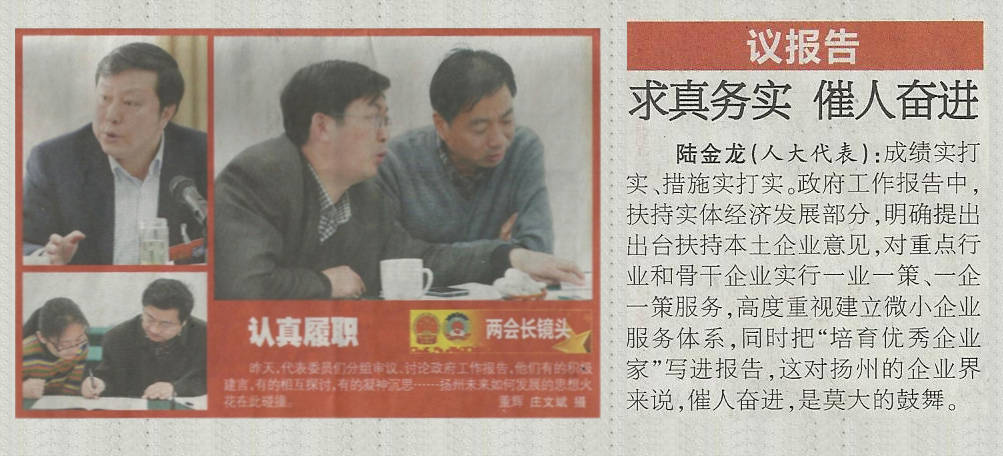《揚州日報》報道陸董事長參加市人代會情況