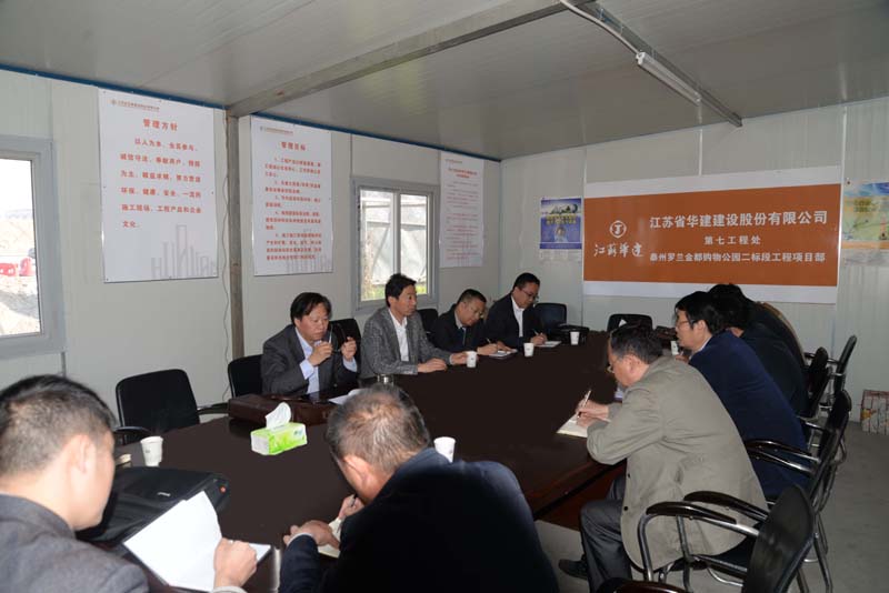 陸董事長一行先后到泰州羅蘭金都購物公園、心怡錦江國際酒店、美好易居城香榭、美好易居城樂天瑪特等項目工地進行參觀考察。在施工現(xiàn)場,陸董事長親切慰問一線員工,詳細詢問項目進展情況,并囑咐把好質(zhì)量關(guān),確保安全生產(chǎn)。在項目部,蘇北公司總經(jīng)理朱旭升匯報了今年來的整體工作情況,并將在泰幾個在建項目情況進行了介紹。陸董事長對蘇北公司近年來表現(xiàn)出的迅猛發(fā)展態(tài)勢表示滿意,認為經(jīng)營班子付出巨大努力,取得了良好的發(fā)展局面。對今后的工作陸董事長強調(diào)要進一步做好市場分析,形成預案,把控風險;進一步提高管理水平,降本增效,節(jié)能降耗;進一步提升運行質(zhì)量目標,明確責任,落實到人,實現(xiàn)優(yōu)質(zhì)、高效、平穩(wěn)運轉(zhuǎn)。