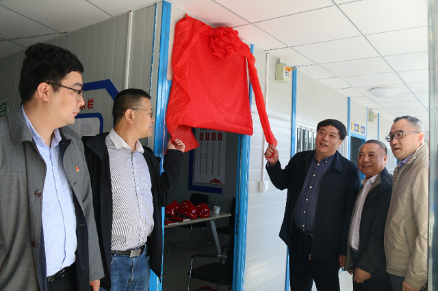 揚(yáng)州分公司黨支部副書記施衛(wèi)東宣讀了關(guān)于華建黨委同意成立江蘇華建GZ076地塊項(xiàng)目部臨時(shí)黨支部的批復(fù),錢啟明和施衛(wèi)東為“江蘇華建GZ076地塊項(xiàng)目臨時(shí)黨支部”揭牌,開啟了支部建設(shè)新征程,現(xiàn)場全體人員共同見證了這個(gè)難忘的時(shí)刻。