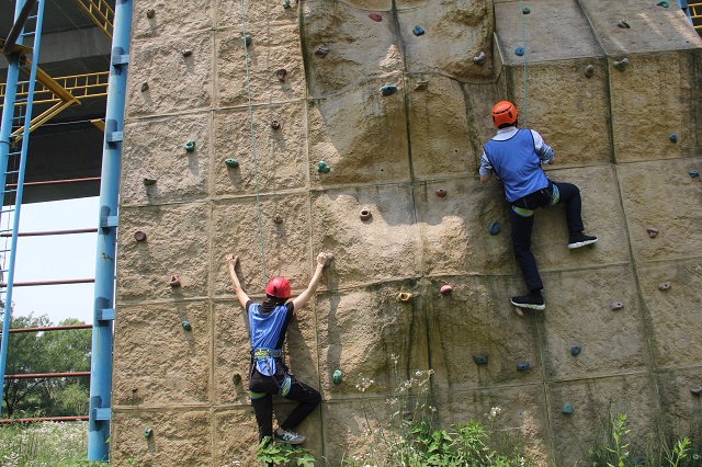 面對技巧性和冒險性較強的“巖上芭蕾”,大家紛紛挑戰(zhàn)自我,勇敢攀登,體驗了一把“蜘蛛俠”飛檐走壁的瀟灑;在挑戰(zhàn)五分鐘項目中,所有隊員群策群力,以“教科書”般的團隊協作能力與默契精神,用最短時間高效地完成了四個小項目的考核挑戰(zhàn),被培訓老師點贊為“卓越團隊”;動力繩圈項目讓大家感受到了團隊的力量,聲聲吶喊中迸發(fā)出的堅定和不服輸的精神響徹在茂盛挺拔的松林中。每位小伙伴累并快樂著,懂得要有敢于拼搏的精神和極強的團隊榮譽感,才能完美地贏得每一次挑戰(zhàn)。