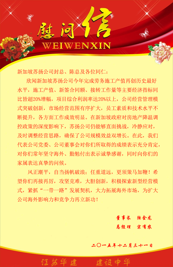 近日,公司工會將凝聚著廣大干部員工的愛心捐款交到員工吳江手中,并轉(zhuǎn)達(dá)廣大干部員工對其及患病兒子的關(guān)心和慰問。吳江是新加坡蘇揚公司的員工,近期...